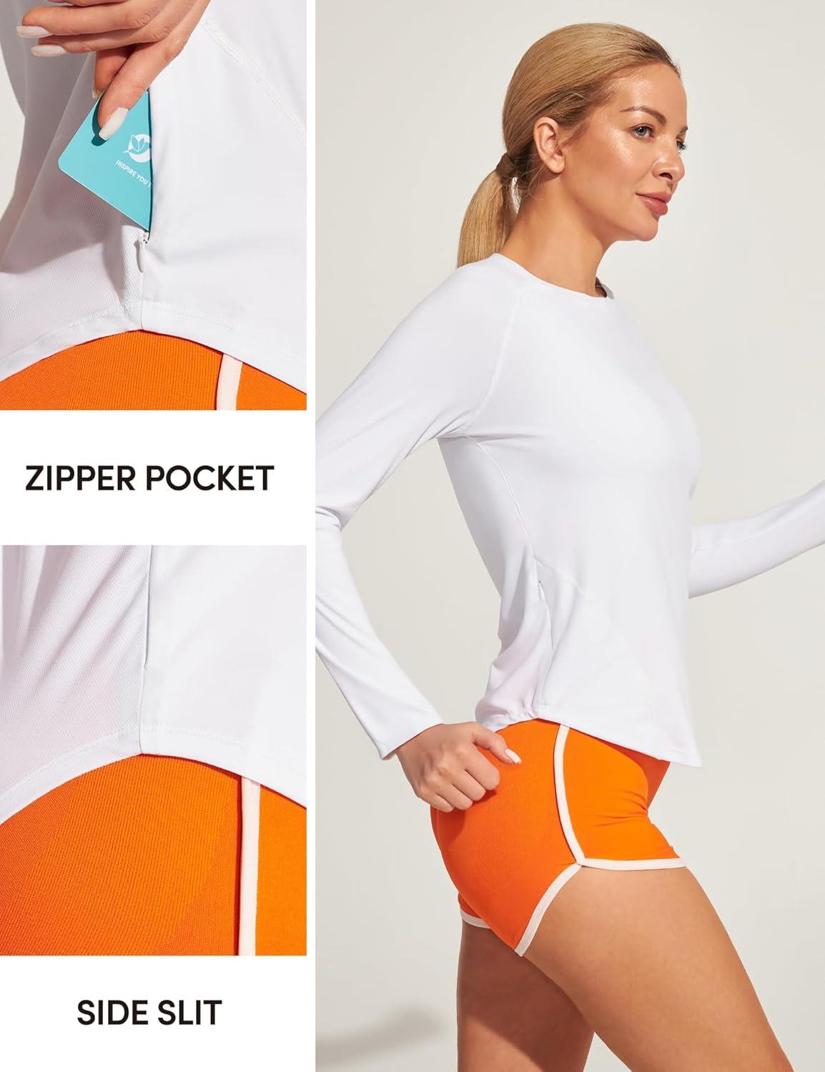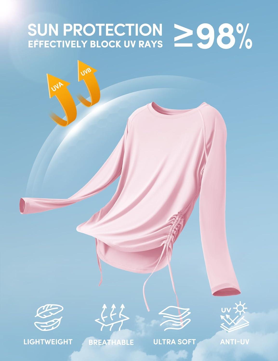 Don't miss out on our limited-time offer: buy IUGA Rash Guard for Women UPF 50+ SPF UV Protection Long Sleeve Workout Tops with Pockets Dry Fit Hiking Swim Shirt(Pink), get a free {accessory}!